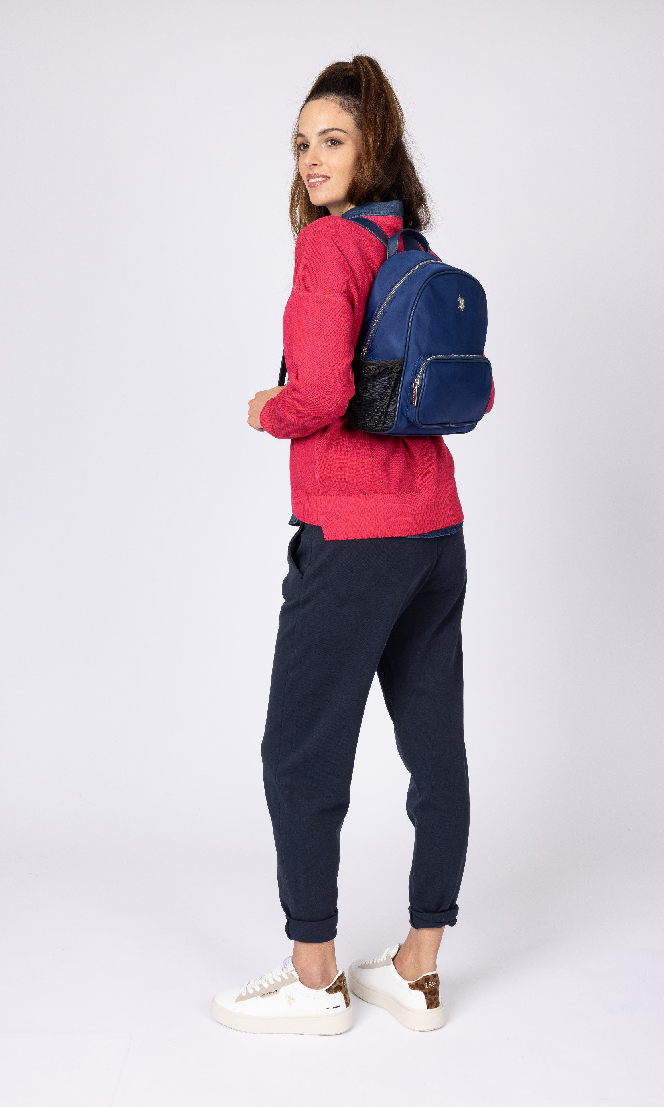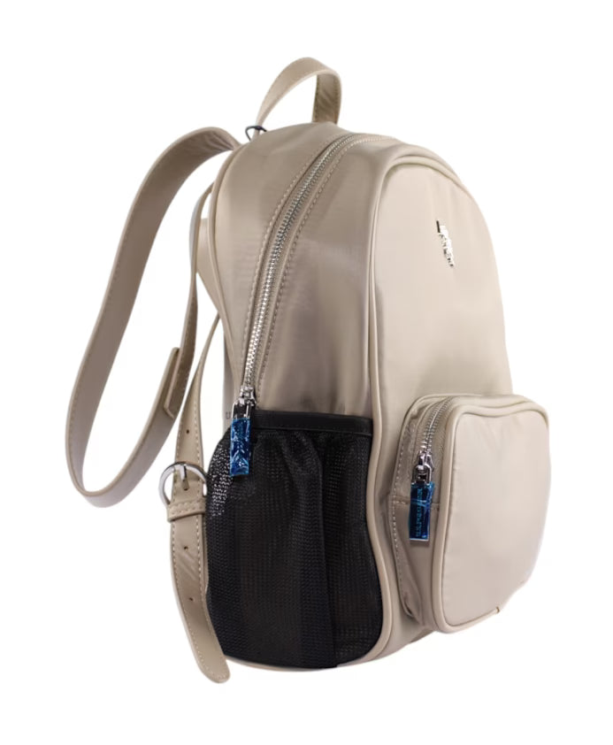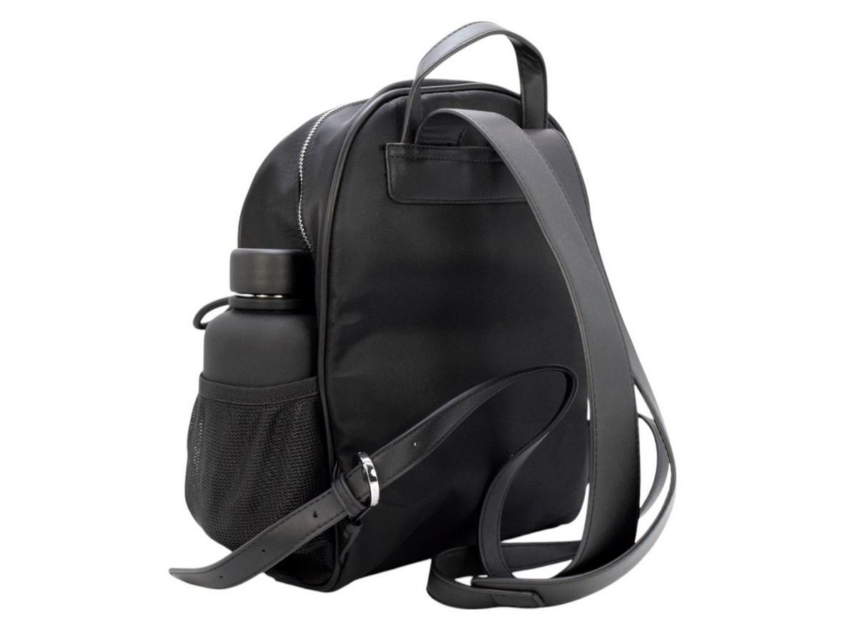 Sporty nylon styles with logo webbing and integrated side pockets for the included 350 ml water bottle. Practical everyday volumes with a clean look.