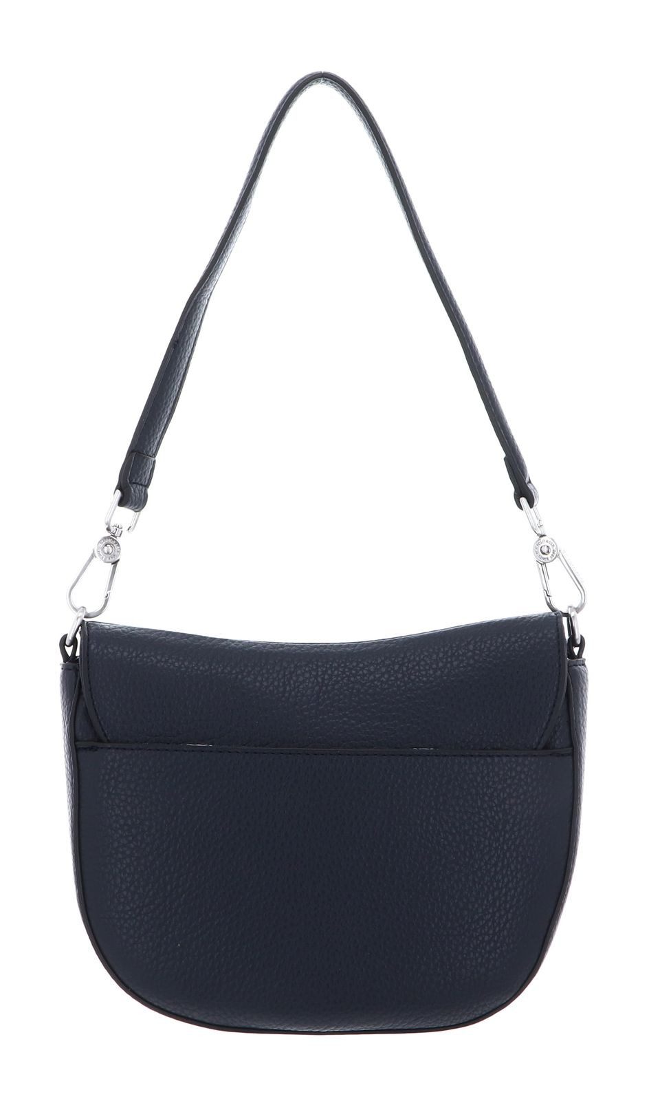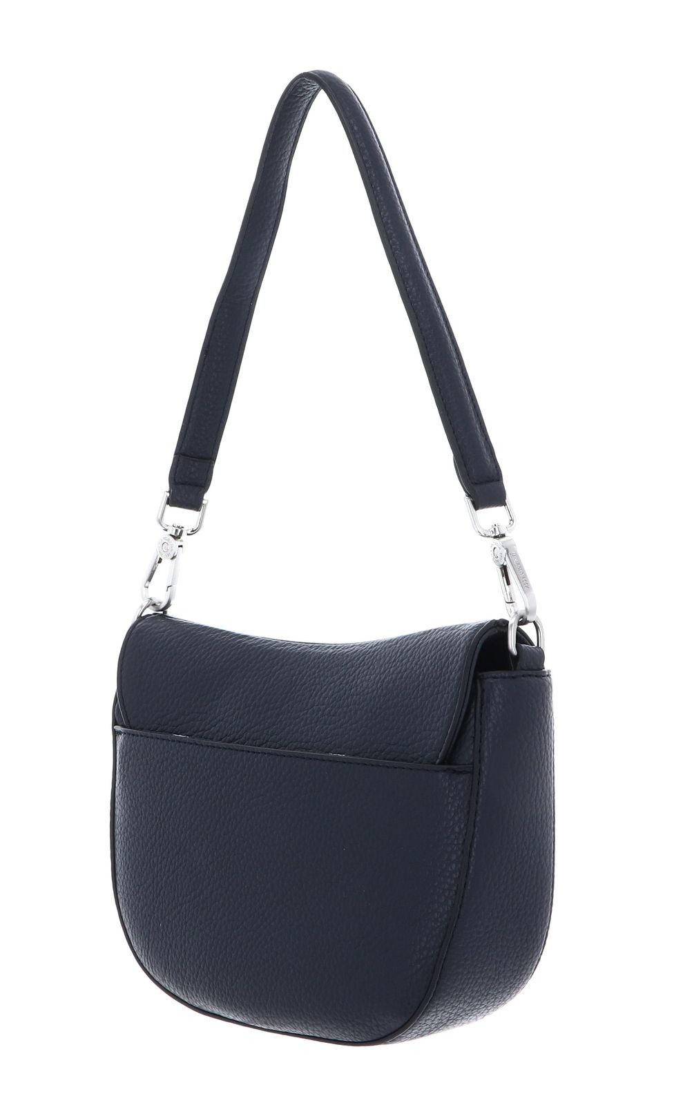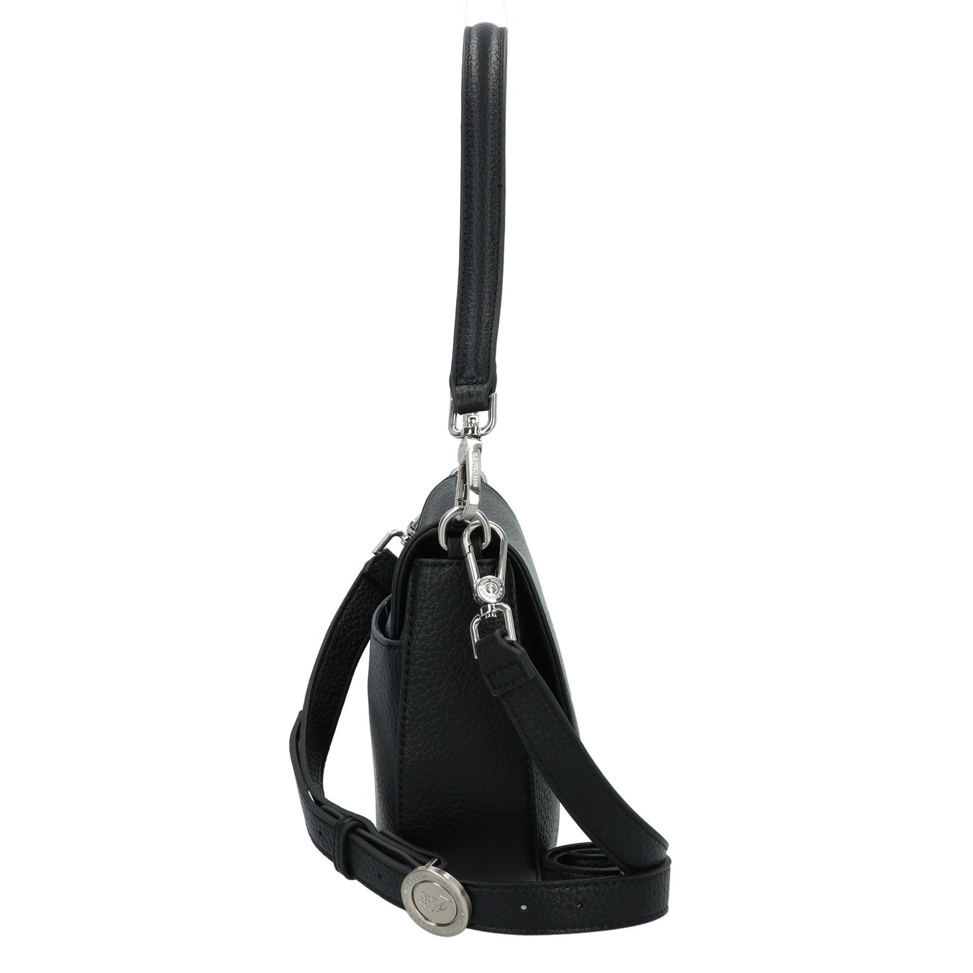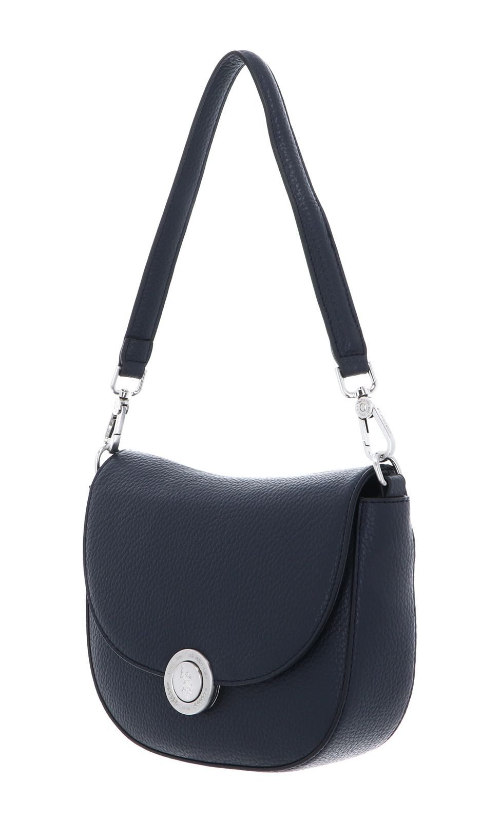 Material: PU – Metal finish: Brushed light gold / Brushed nickel. Compact version of the flap crossbody with the same rounded profile, front logo fastener and 2-in-1 strap styling (short handle plus long adjustable strap) for versatile carry.