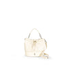 horse logo, carried by a short handle or worn crossbody with the detachable, adjustable long strap as seen on the model. Chain links with logo at the handle base add a light metallic accent.