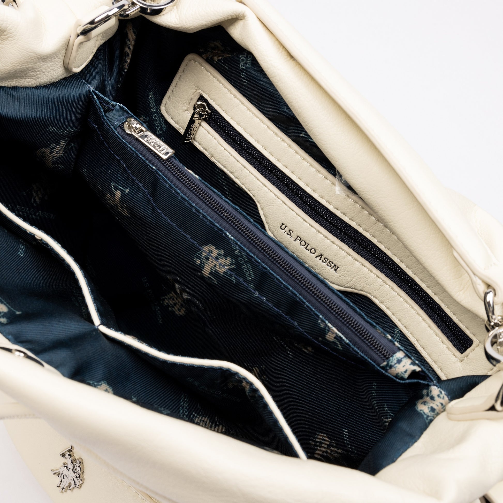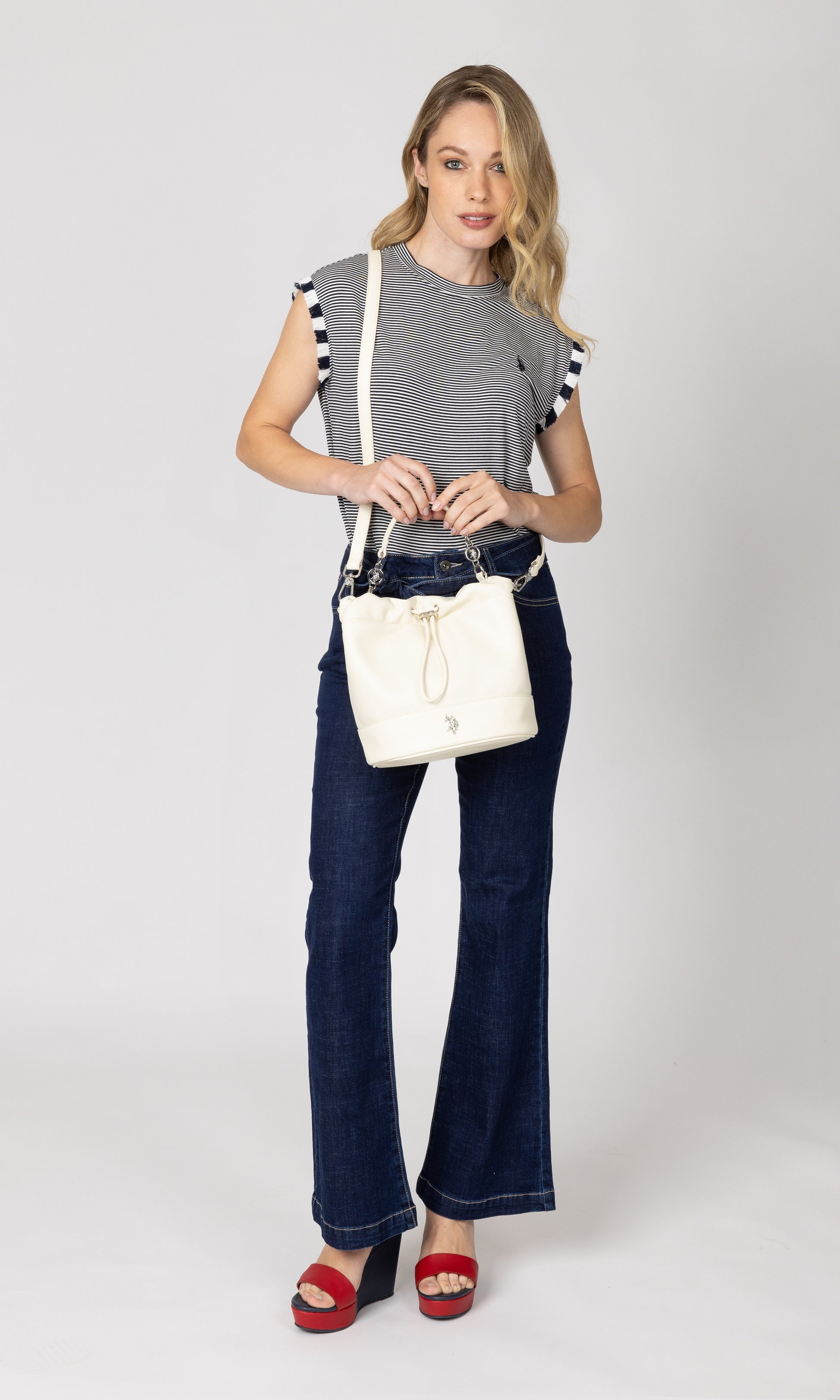 Super soft city-style bags in hammered-effect PU with subtle drawstring details at the sides. Handles feature a subtle U.S. Polo Assn. logo detail in shiny nickel hardware. The slouchy shapes mold to the body for an easy, modern feel.