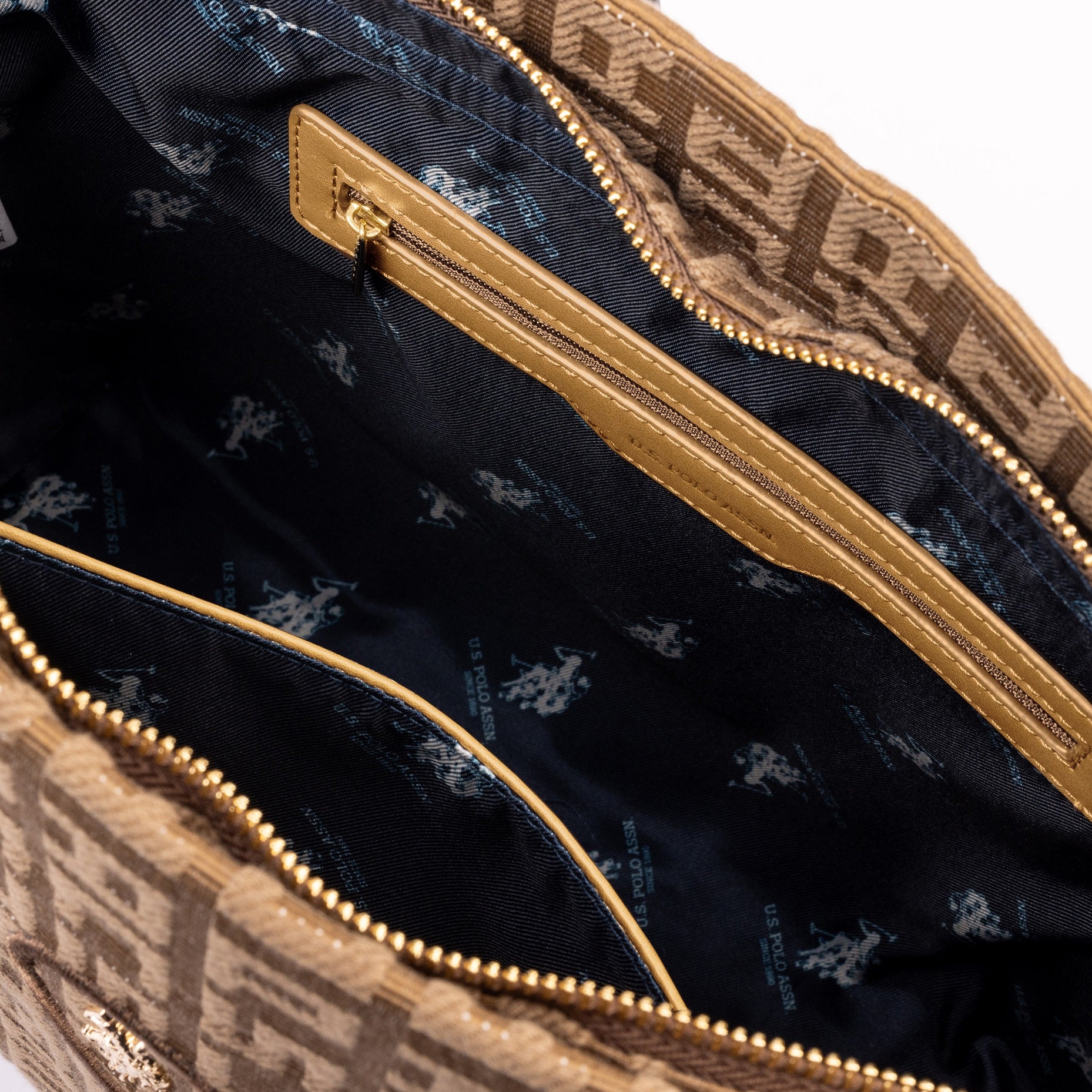 Woven jacquard fabric personalized with the all-over “USPA” acronym. Clean, modern shapes with a classic twist and a round metal logo framed by embroidery.