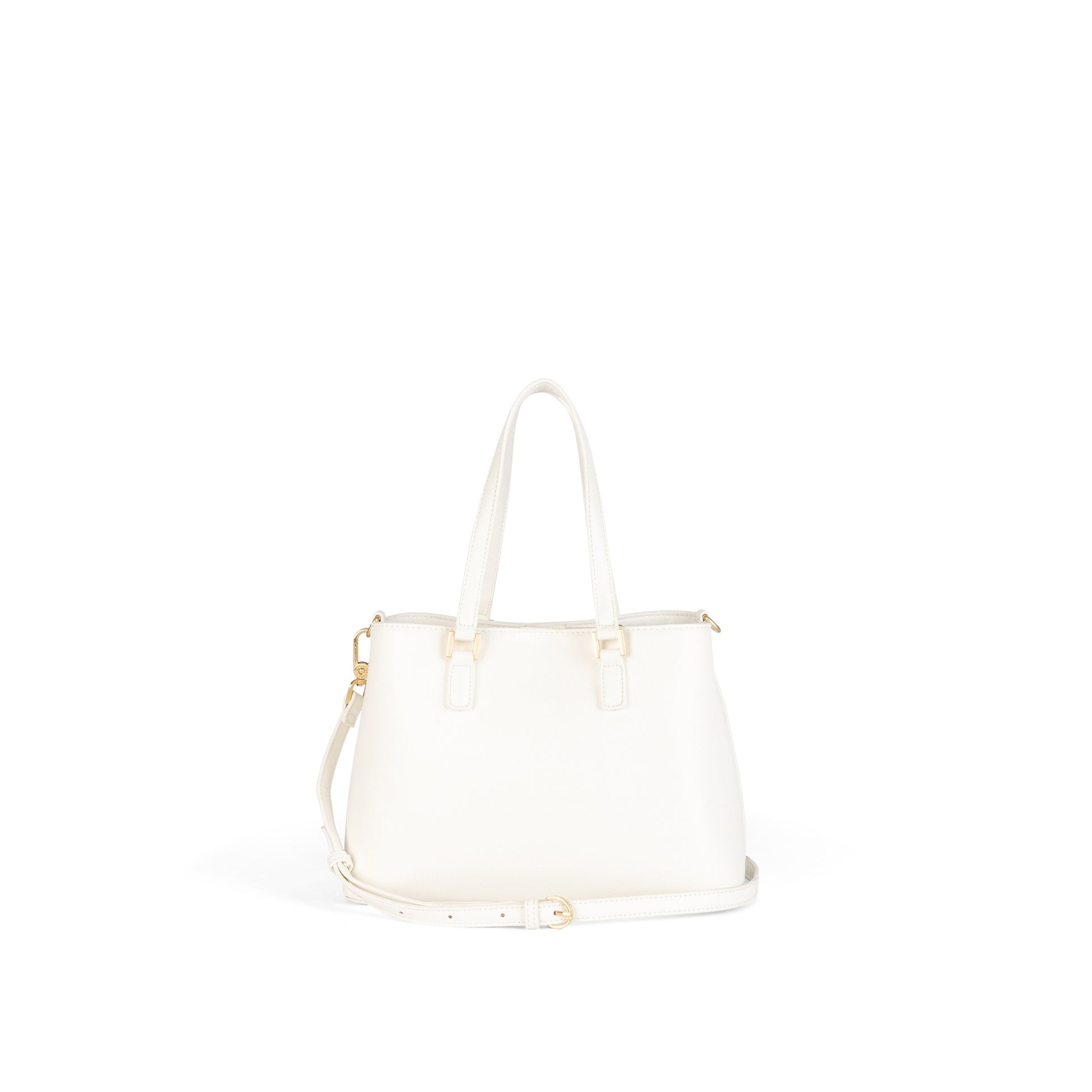 Compact double-handle tote with zip and magnet closure, divider compartments for further organization and structured silhouette.