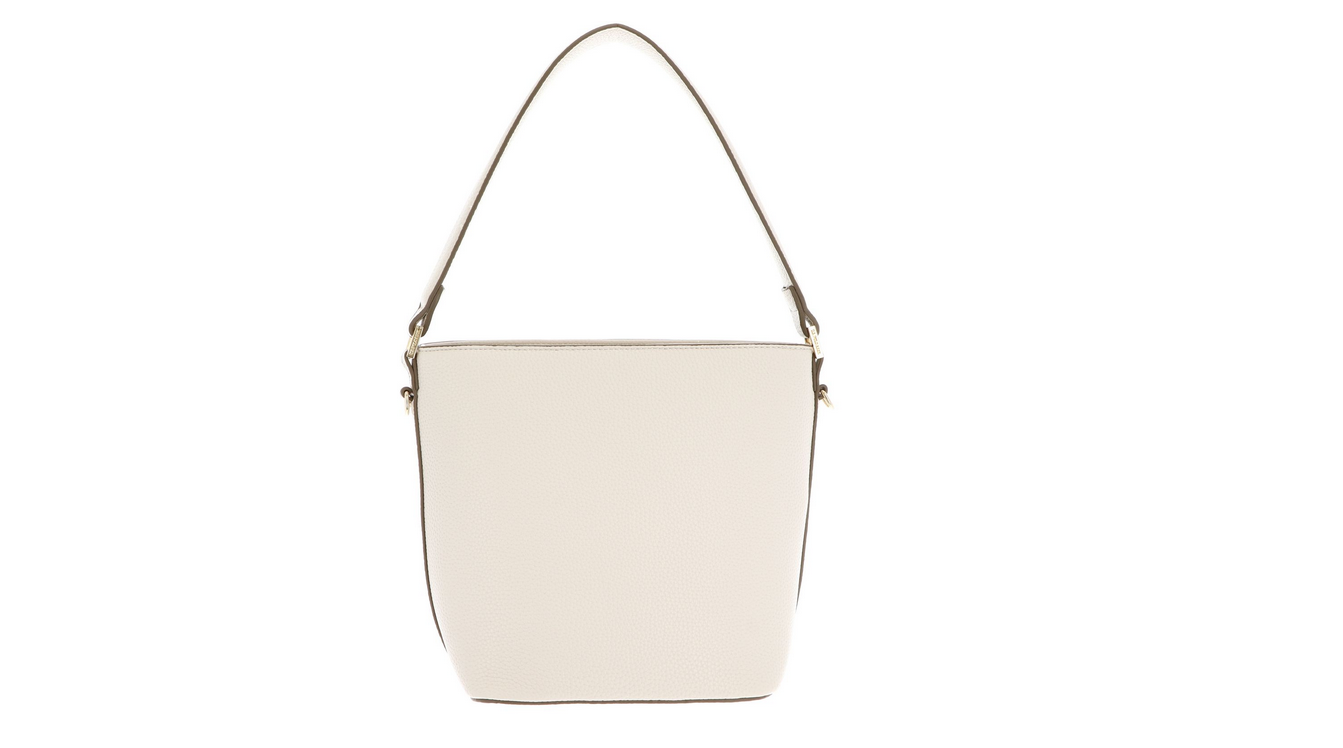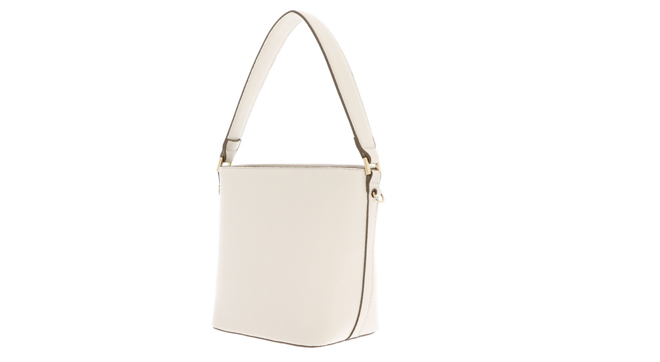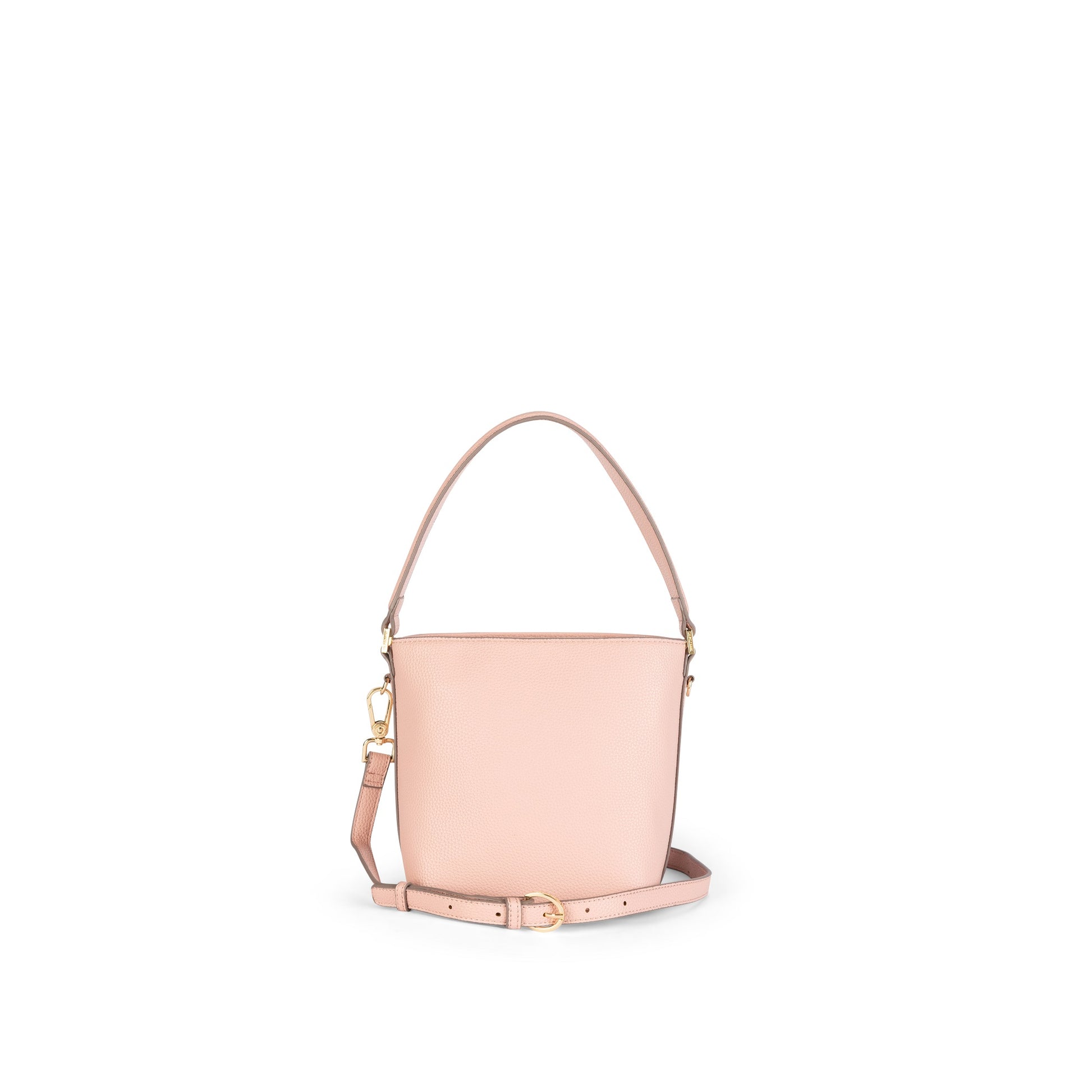 Petite bucket with top handle and zip top closure. Detachable, adjustable long