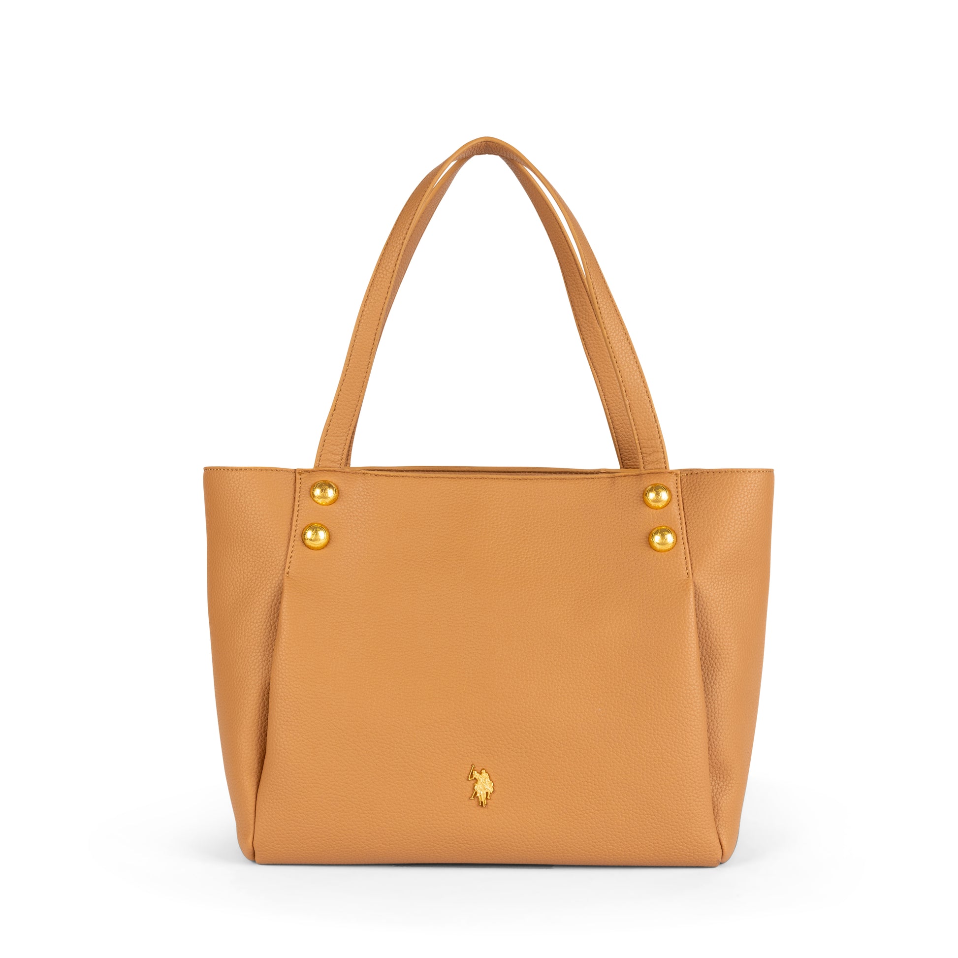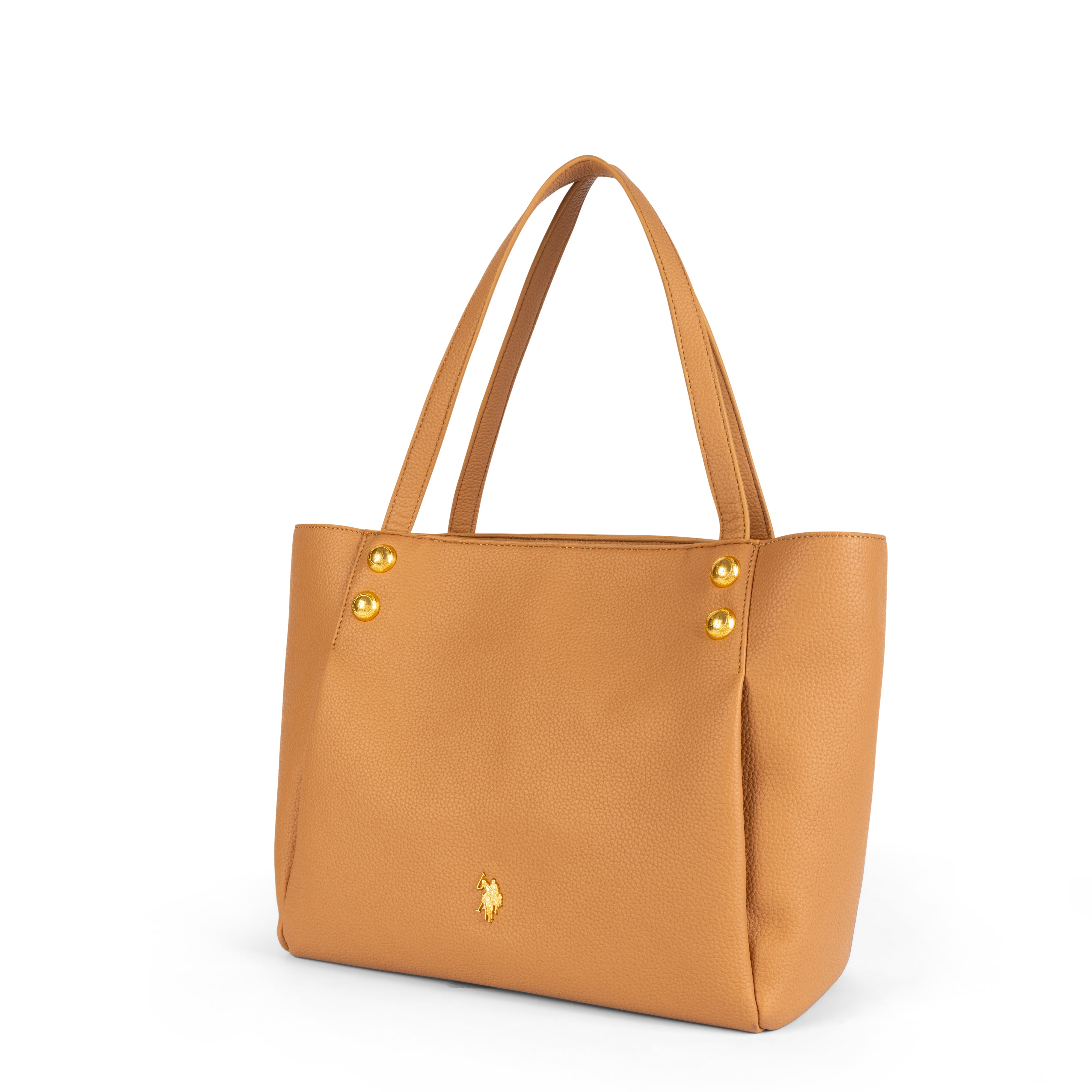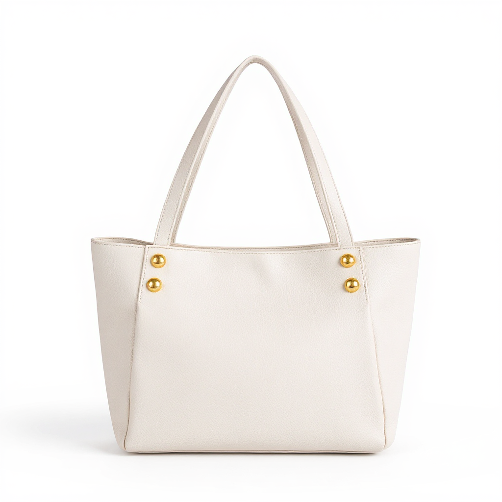 Ultra-soft and elegant, unlined silhouettes embellished with beautiful metal buttons under handles and logo at center.