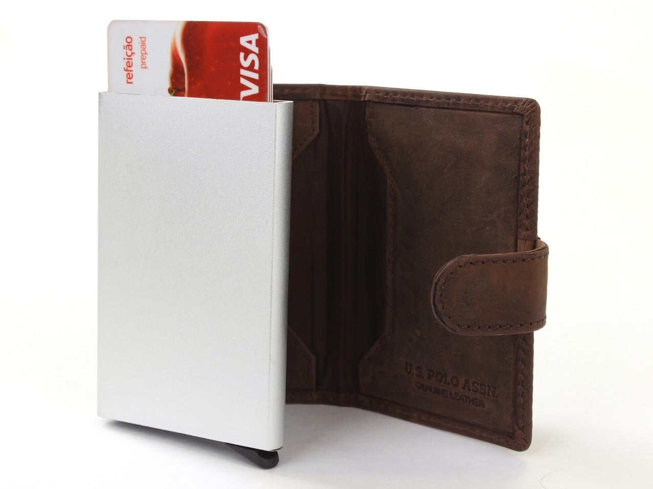 The U.S. Polo Assn. Hamilton credit card holder is a refined men’s accessory designed for everyday practicality with a classic, rugged touch. Part of the Hamilton collection, it is crafted from genuine leather, offering durability, a rich texture, and a distinctive finish that develops character with use.