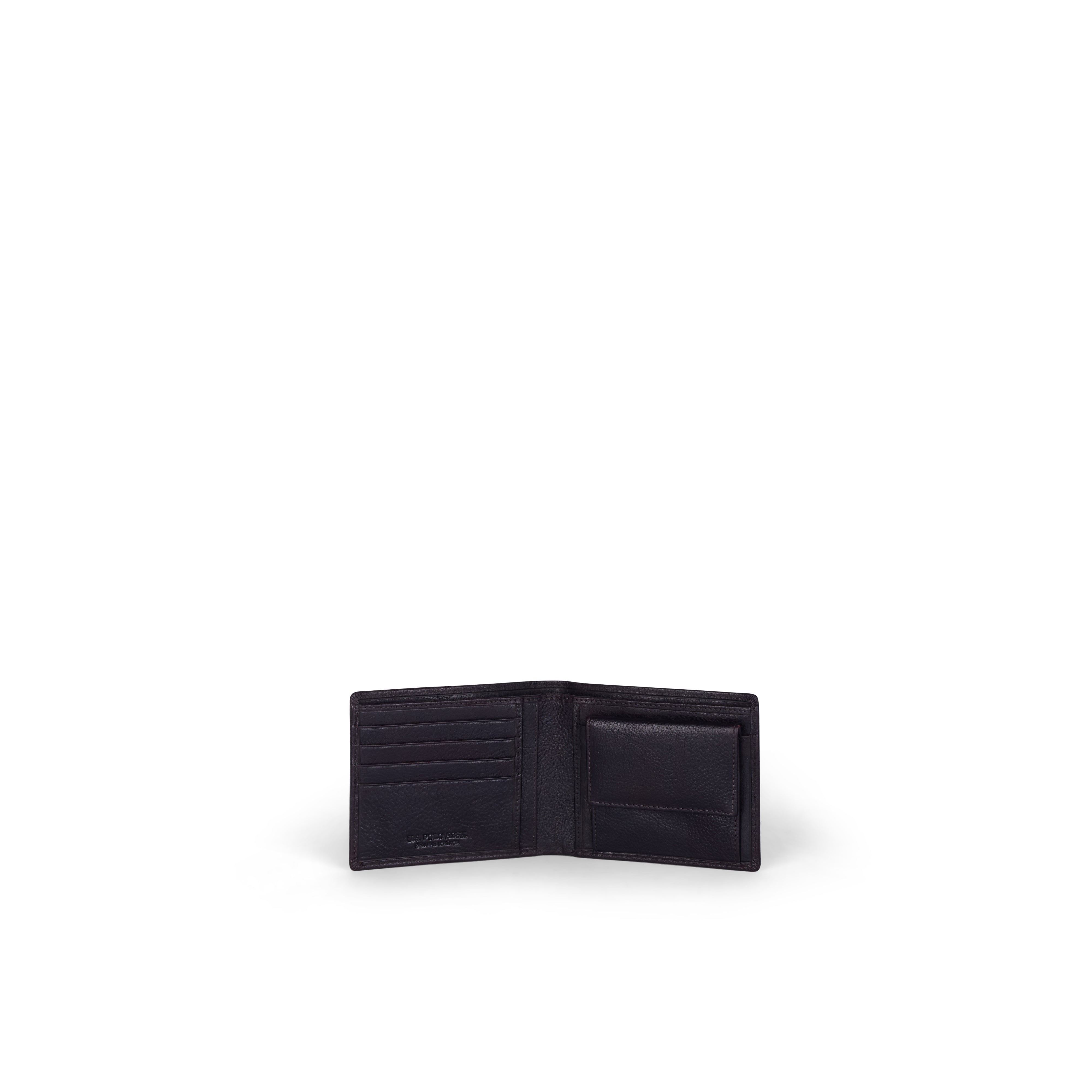 Featuring a classic horizontal layout, the wallet includes multiple card slots, a compartment for banknotes, and a secure coin holder to keep essentials neatly organized. Its slim yet structured design ensures comfortable pocket carry, while the clean lines and subtle branding make it suitable for both casual and formal occasions.