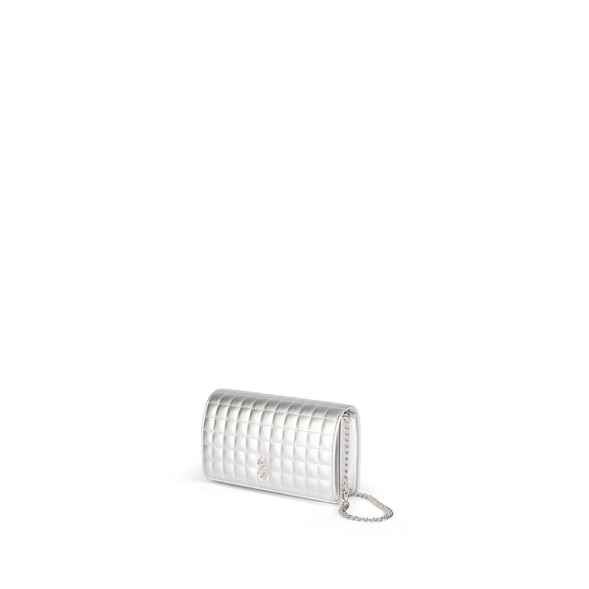 Evening-ready silhouettes in satin, quilted PU and smooth finishes, accented with chain details and polished metal logos. Refined, compact shapes sized for occasions and nights out.