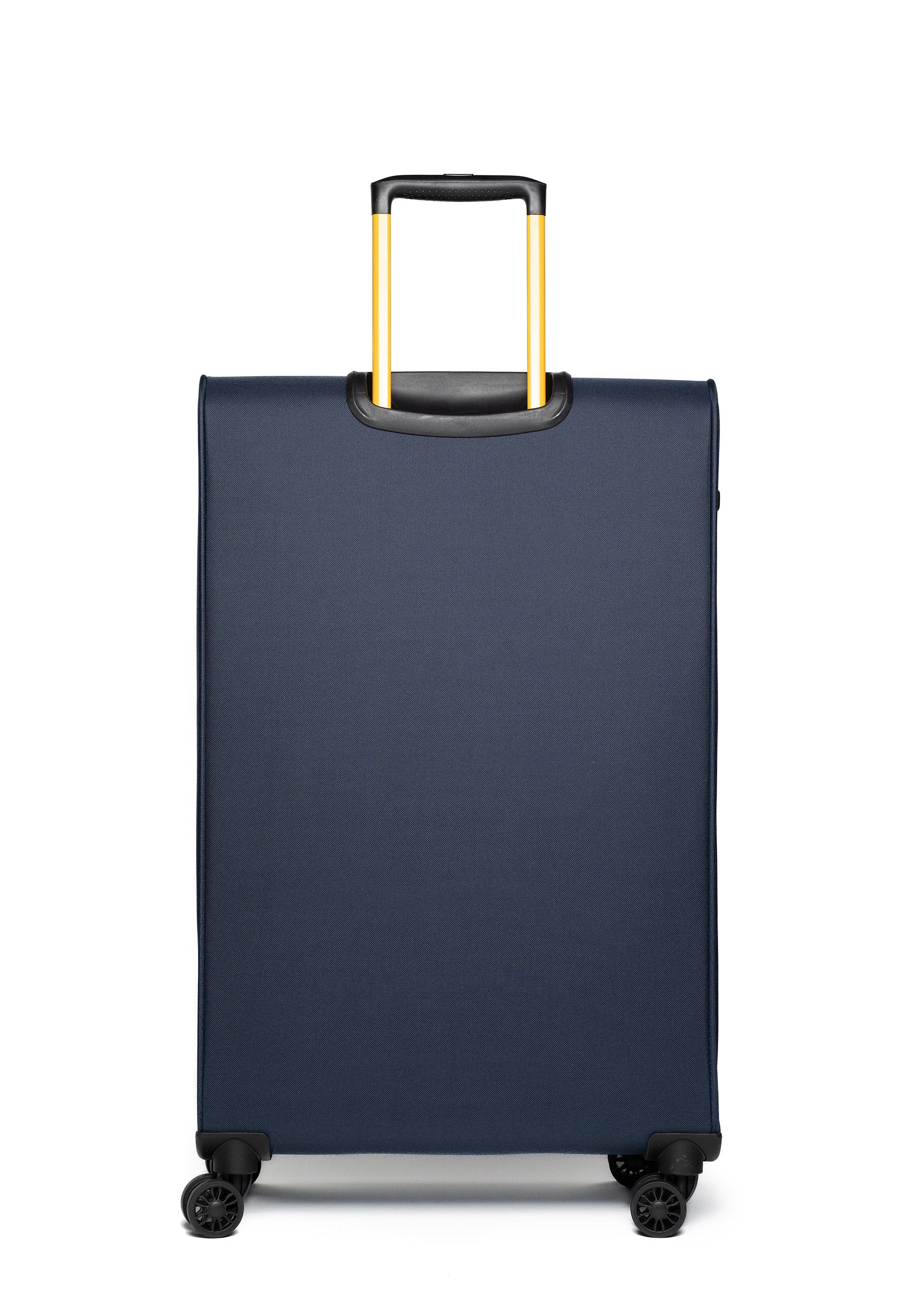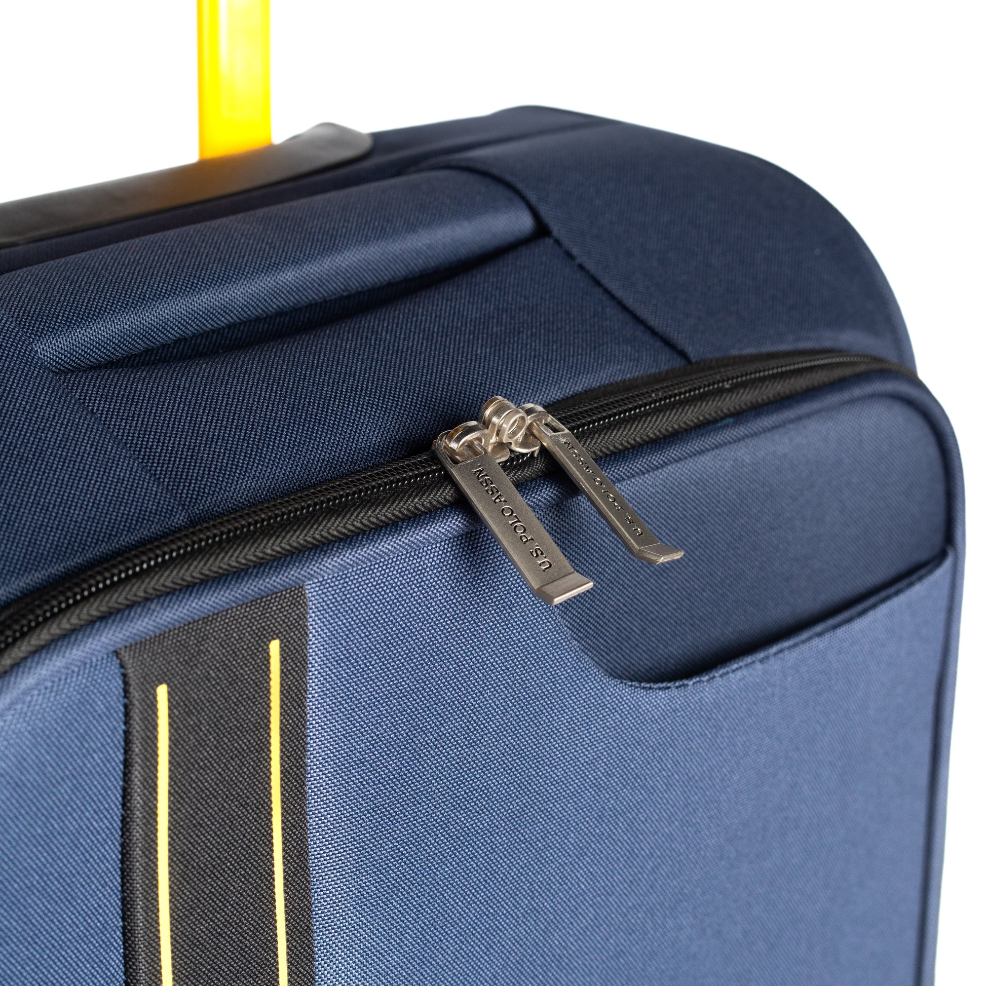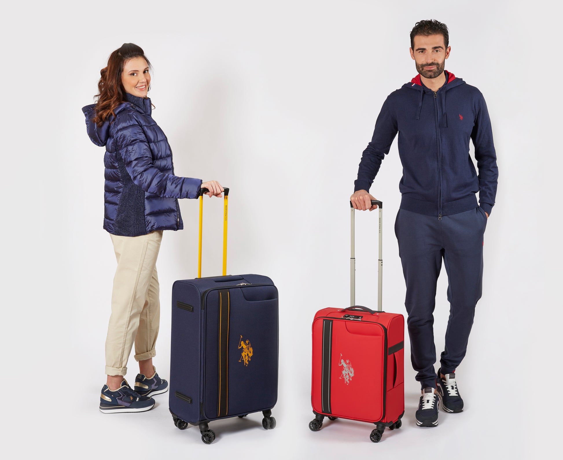 Sport-inspired softsides for flexible packing. Lightweight polyester bodies ride on stable spinner wheels and a smooth trolley; pockets and paneling give quick access to travel essentials. The look is clean and athletic, with the USPA emblem placed upfront. (Cabin size omits the side handle for a trimmer silhouette.)