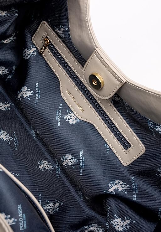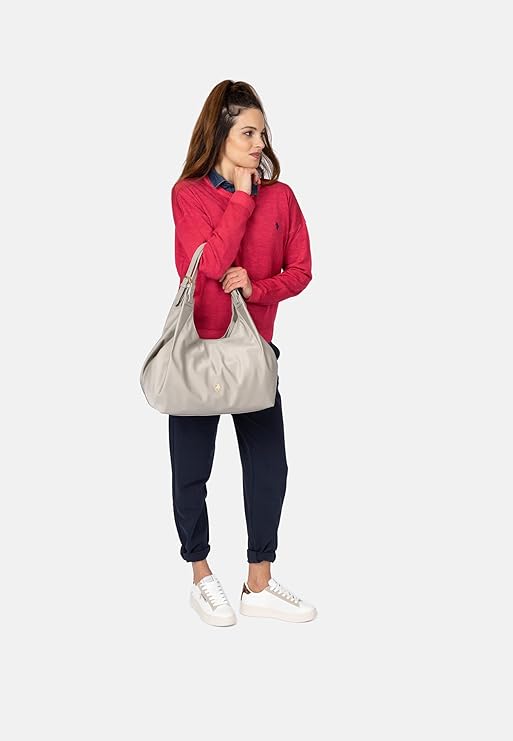 A light gold 3D metal horse logo adds a sophisticated touch to the minimalist exterior, while the adjustable double shoulder straps with metal buckles bring both style and practicality. Inside, the spacious main compartment includes a secure zip pocket and signature branded lining, offering organisation without compromising on volume. Whether for work, errands or travel, this bag is the ideal blend of sportiness and feminine elegance.