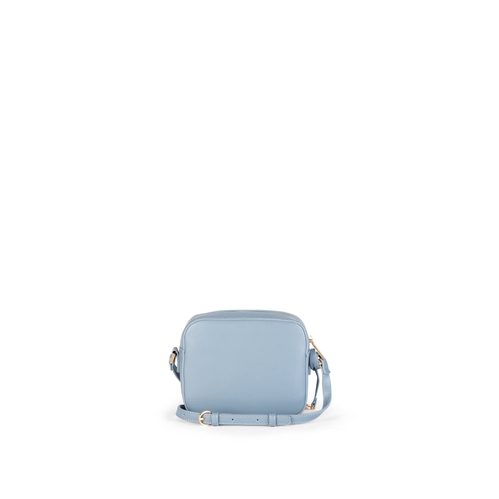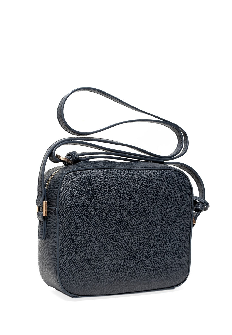 Boxy zip-top crossbody with rounded corners and an adjustable strap;