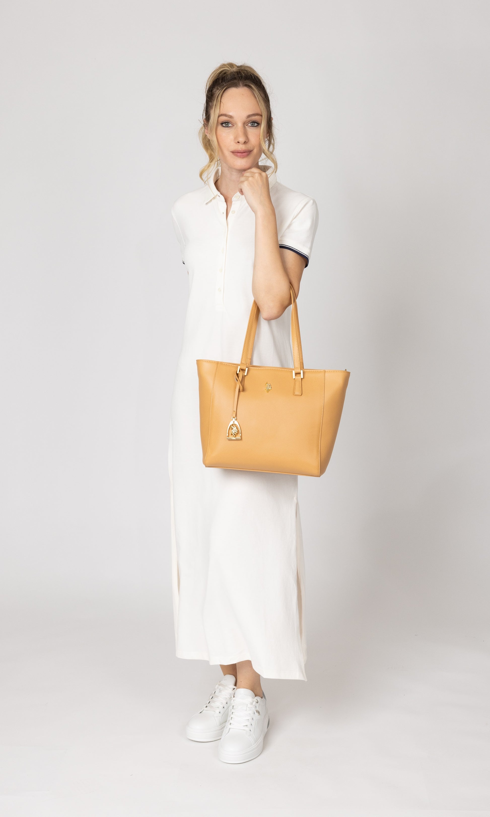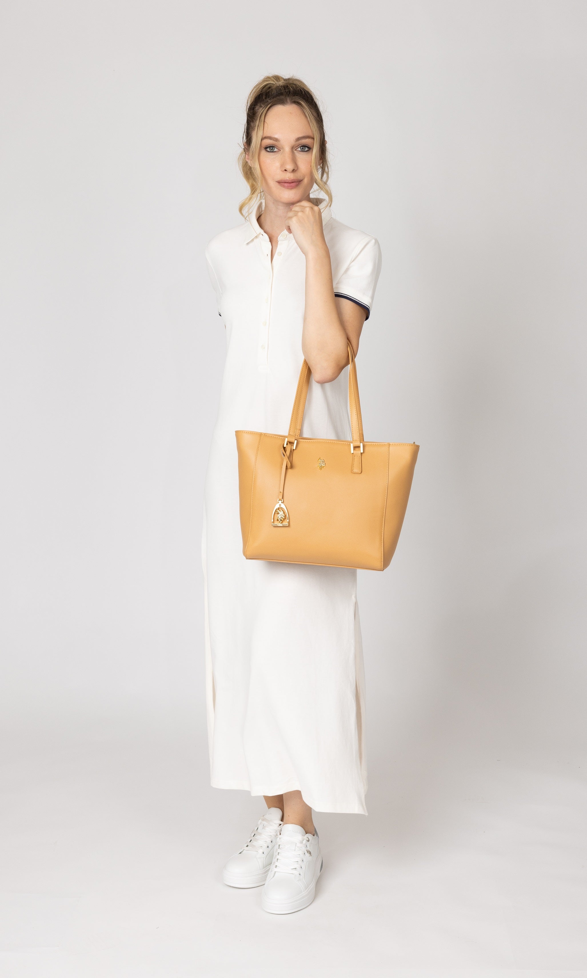 Jones, the basic city style collection in hammered effect PU with a soft hand-feel, finished with light gold metal hardware and personalized with the 3D metal horse logo.