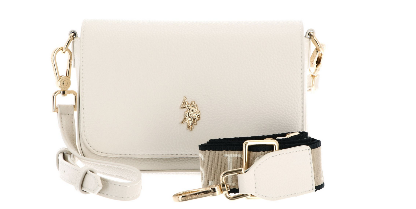 Modern city crossbodies in soft-grain PU with signature metal horse logo. Each style showcases a detachable, adjustable wide webbing strap with woven U.S. POLO ASSN. branding for a sporty look, plus a slim matching PU strap where shown.