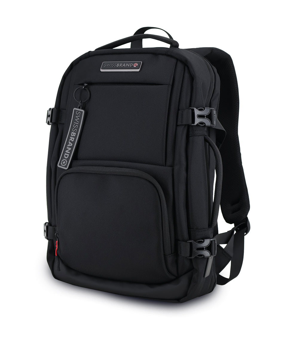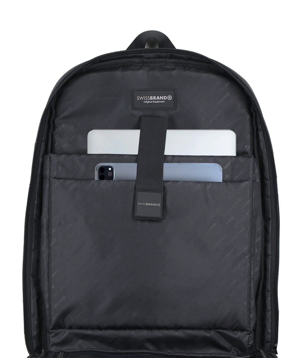 Comfort is enhanced by padded shoulder straps and an ergonomic back panel, while adjustable compression straps with buckle closures help stabilize the load. A rear trolley attachment strap adds travel convenience by allowing the backpack to be securely mounted on rolling luggage. Combining functionality, comfort, and a sleek modern design, the Odet backpack is a reliable companion for work, travel, and everyday use.