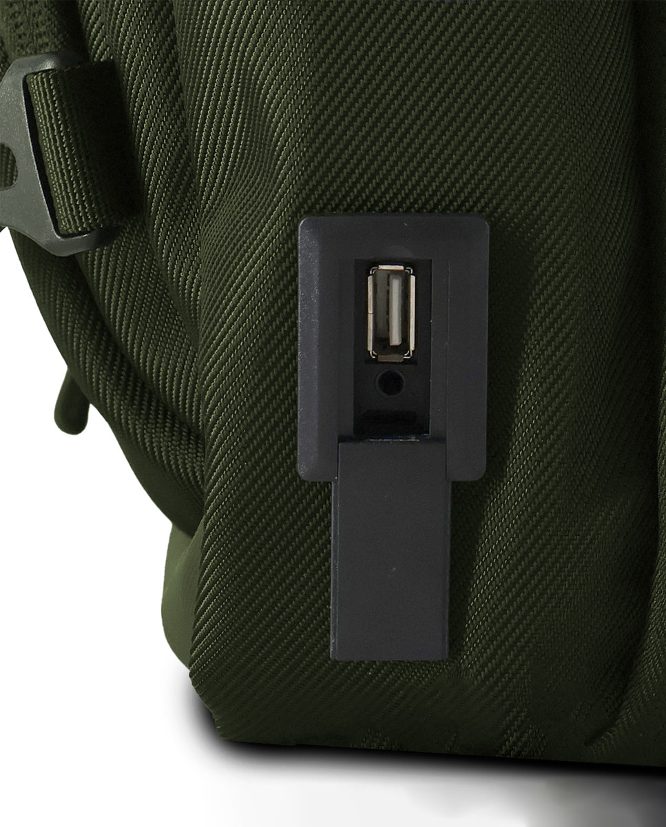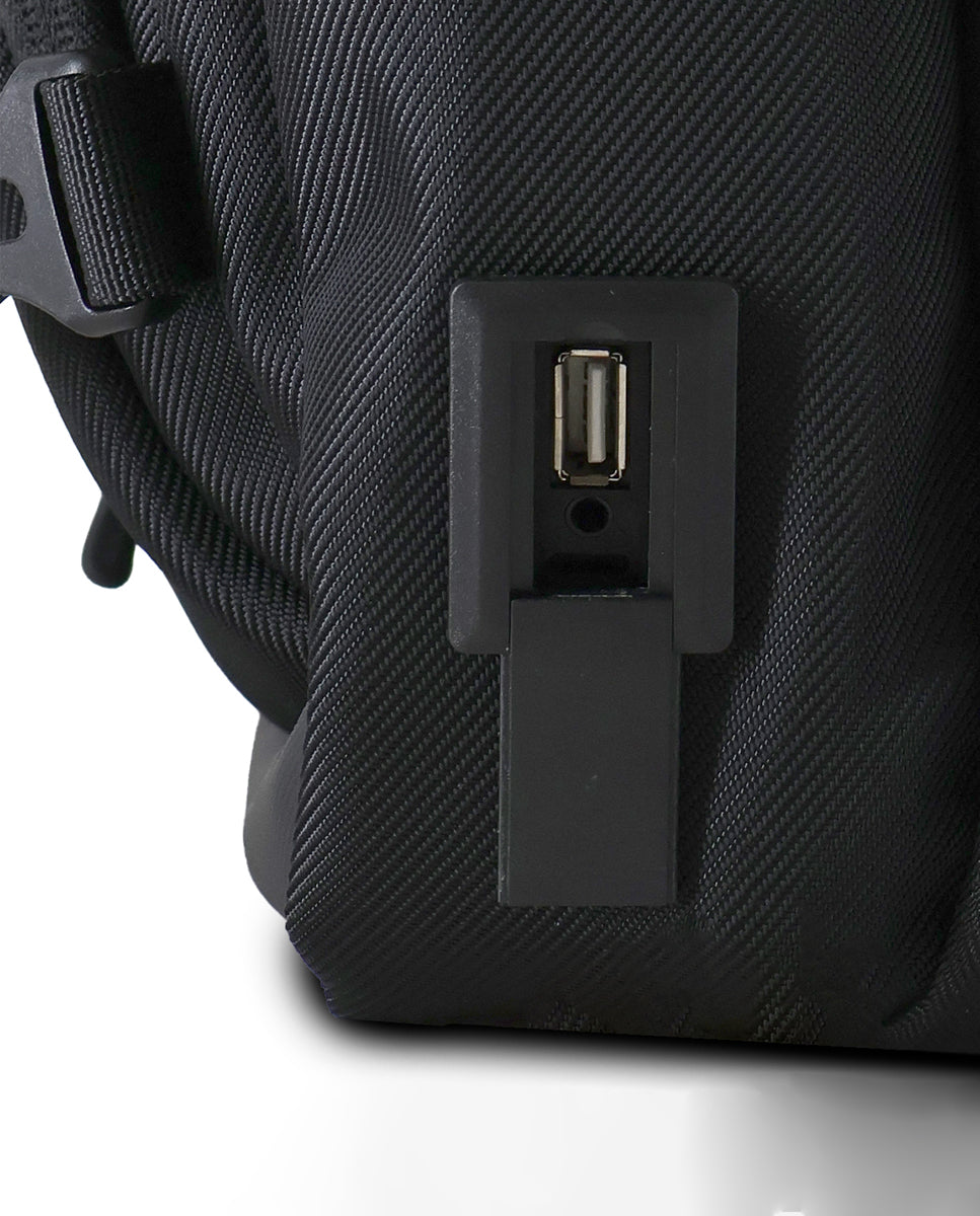 The interior features a padded laptop compartment suitable for devices up to 15”, a dedicated tablet pocket, and multiple organizer sections to keep documents, cables, and personal items neatly arranged. An integrated USB port allows convenient charging on the go when connected to a power bank stored inside the bag. Easy-access pockets provide quick storage for everyday essentials.