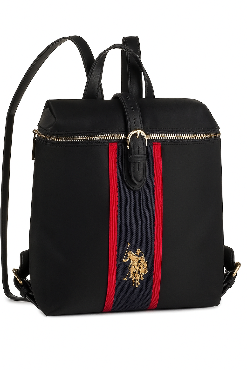 Signature dual-stripe webbing, top buckle detail and the light-gold 3D horse emblem bring a refined athletic touch to this compact backpack design.