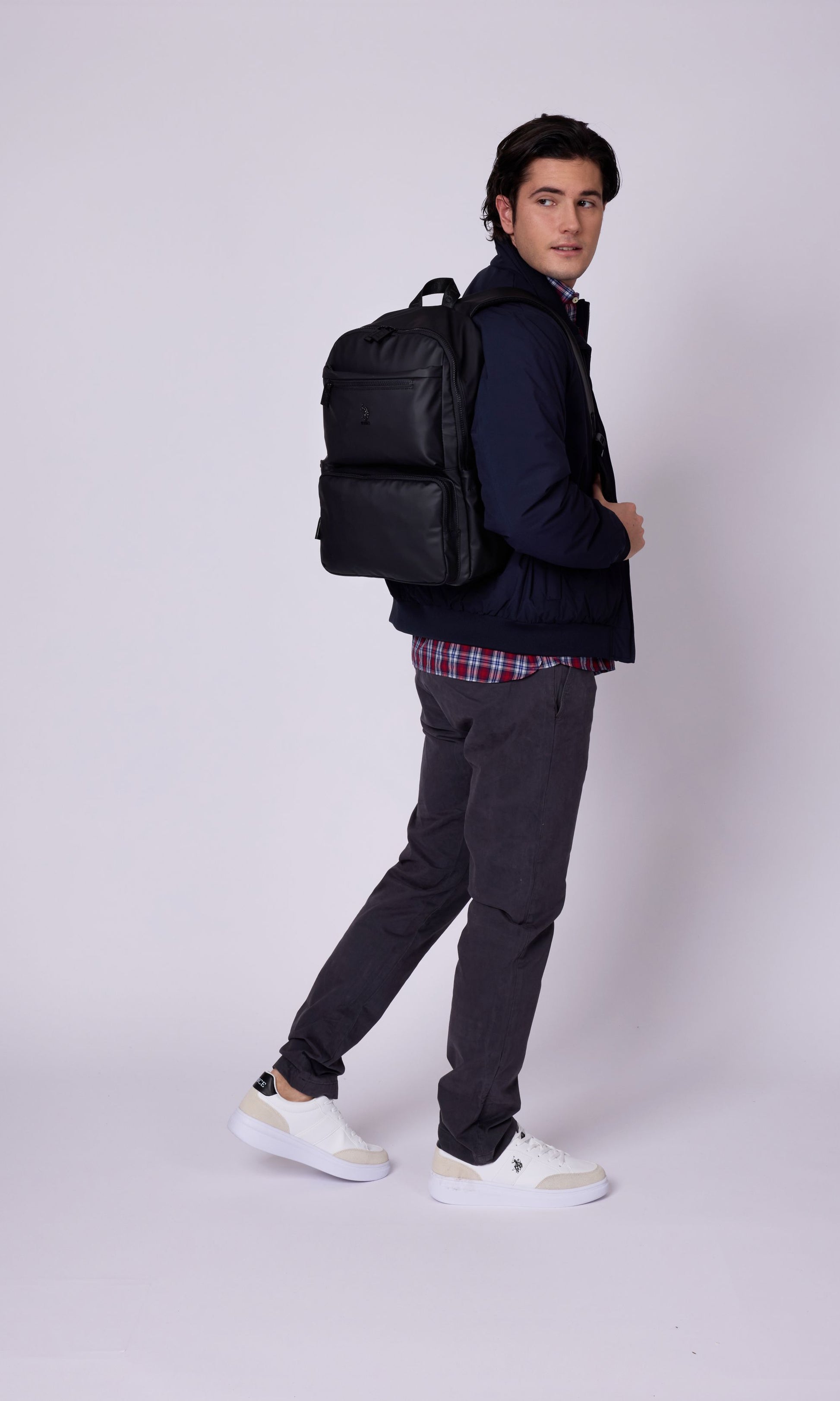 Comfort is enhanced through adjustable padded shoulder straps and breathable mesh fabric on the back, offering support and ventilation during extended wear. A dedicated water bottle pocket adds extra functionality, making this backpack suitable for both work and leisure. Finished with painted metal hardware in tone with the material and the iconic U.S. Polo Assn. logo, it delivers a modern yet understated style.