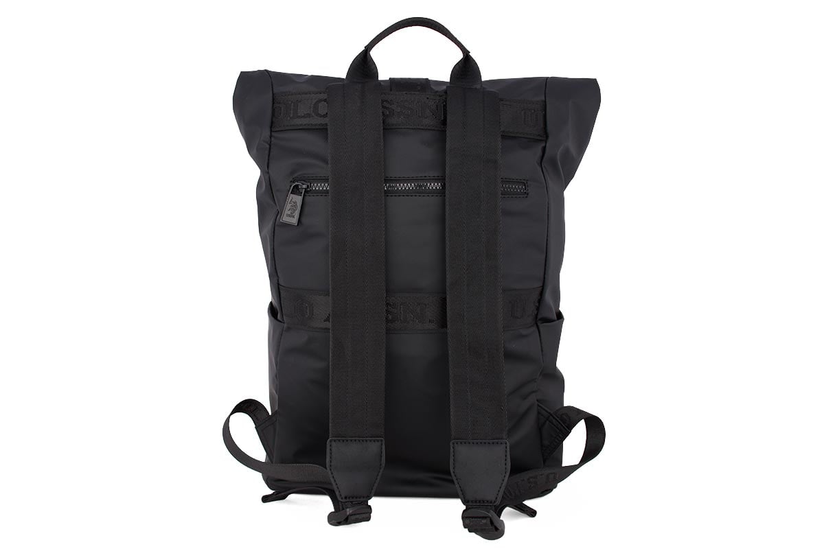 Comfort is ensured with adjustable, padded shoulder straps and breathable mesh fabric on the back, offering support during extended wear. A rear trolley sleeve makes it easy to attach the backpack to luggage, and a dedicated water bottle pocket adds everyday practicality. Finished with painted metal details in tone with the material and the iconic U.S. Polo Assn. logo, this backpack balances function with contemporary style.